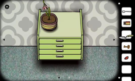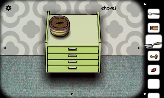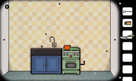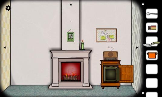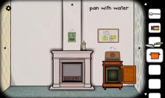 右に移動して、「水の入った鍋」で暖炉の火を消す。