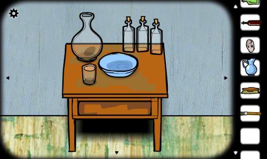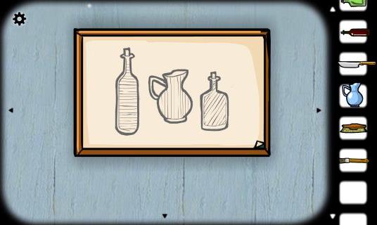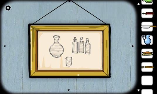 2つの額をヒントに、「アブサンボトル」「ワインボトル」「水差し」の中身を注ぐ。