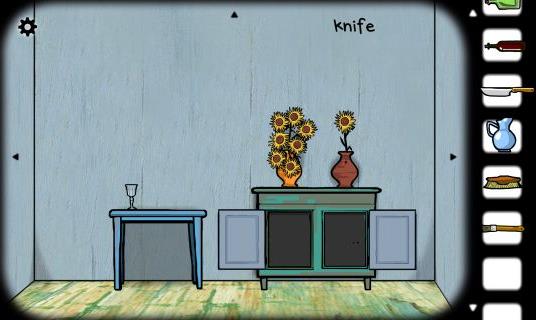 棚の右の扉を「小さなカギ」で開けて、「ナイフ」を入手。