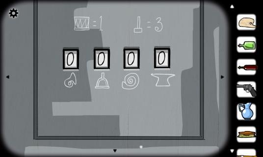 右の扉を拡大して、『太鼓=1、ハンマー=3』を確認。