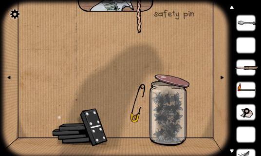 右に移動して、瓶の左の穴に「安全ピン」を取り付ける。