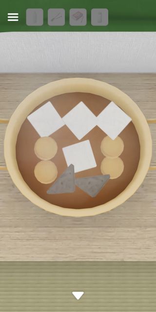 おでんの鍋を拡大して、ドラッグで動かして3つの具材の数を確認。