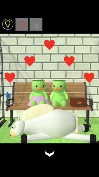 中央奥のベンチを拡大して、ハートの高さを確認。