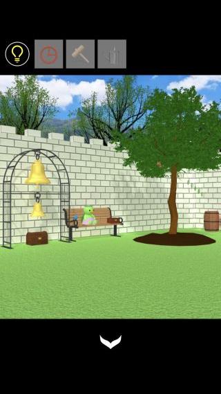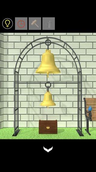 左の鐘を拡大して、「木槌」を使って『大小小大小大大小』の順で叩く。