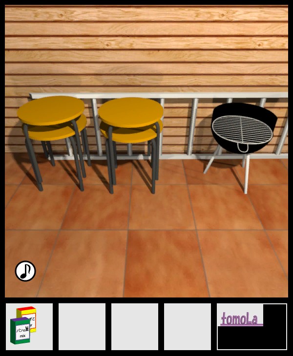 下の椅子とハシゴを拡大して、『脚の数2(ハシゴ)=1、脚の数3(右のバーベキューグリル)=1、脚の数4(左の椅子)=4』を確認。
