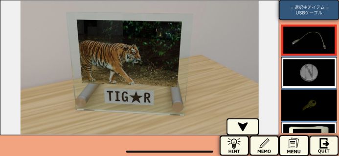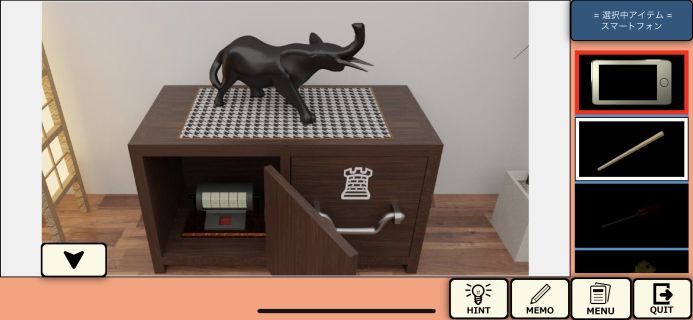 下の引き出しを「小さい鍵1」で開けて、「USBケーブル」を入手。