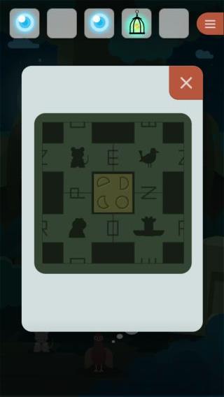 4つの図形は月の形を表していて、その形に月が見える場所にいる動物を確認していく。