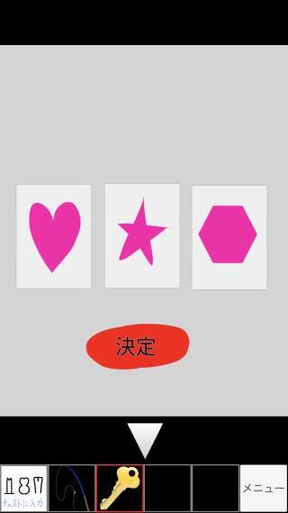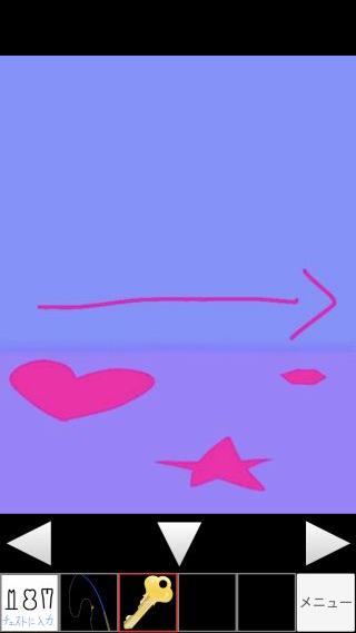 中に入って、矢印の順で『ハート、★、六角形』を確認。