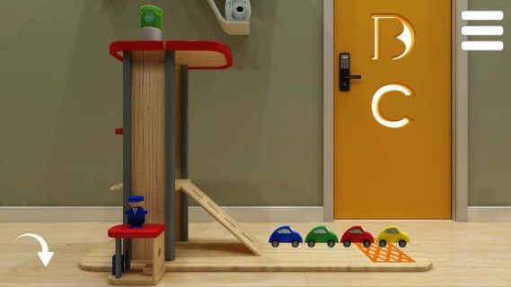 車のおもちゃが『黄、赤、緑、青』の順で出てくるのを確認。