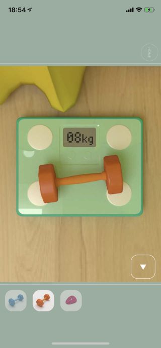 「オレンジのダンベル」を載せて、『8kg』を確認。