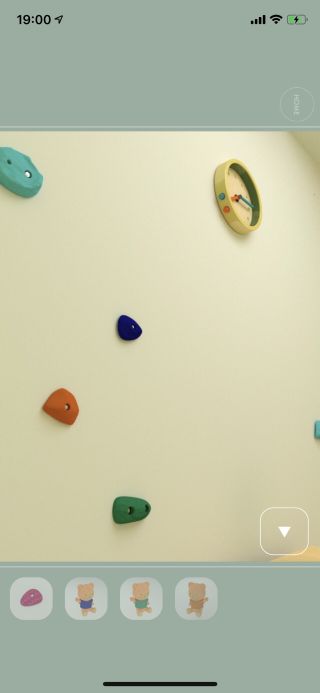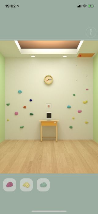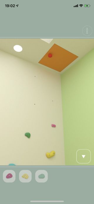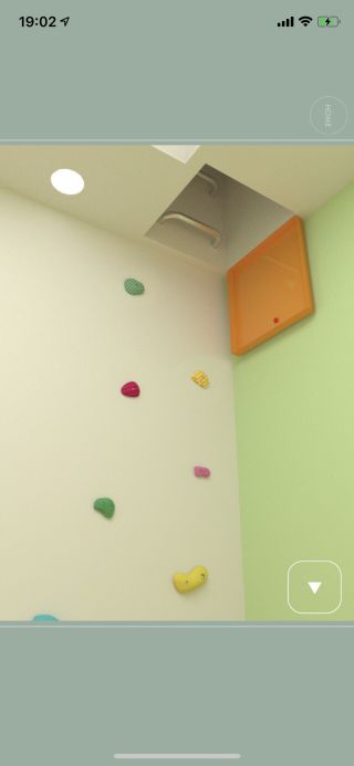右の壁を拡大して、3つの「ボルダリングのホールド」をセットして天井の扉を開けて脱出。