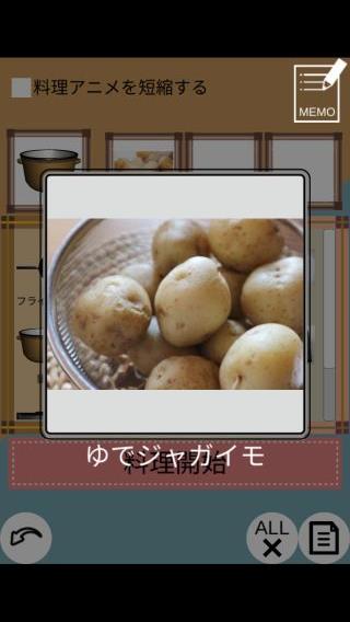 「鍋」と「ジャガイモ」で「ゆでジャガイモ」を作る。