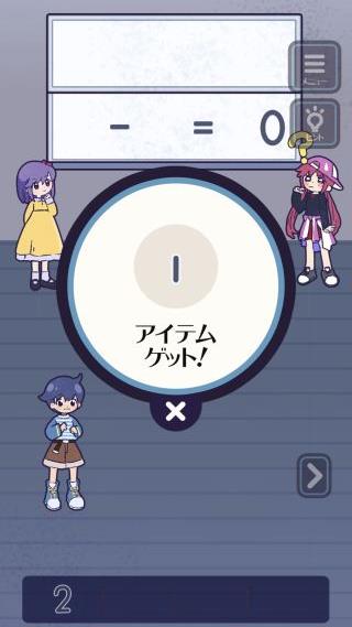 左に2回移動して、左から「ホース」「│」「2」「1」を使って式を成立させる。