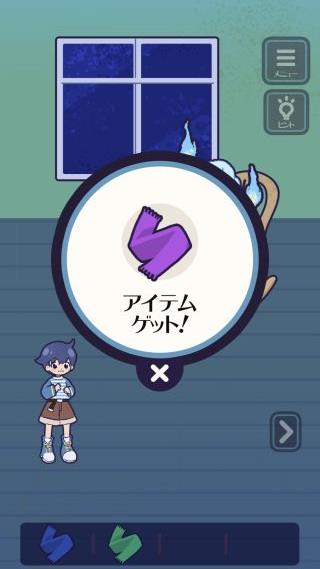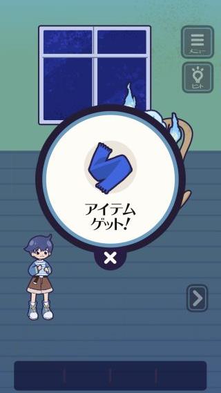 カゴの毛糸を調べて、「青いマフラー」を入手。