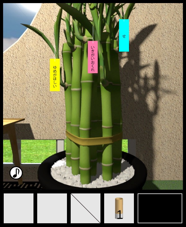 右の竹の植木を拡大して、3色の短冊の高さを確認。