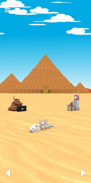左に移動して、奥の3つのピラミッドの高さを確認。