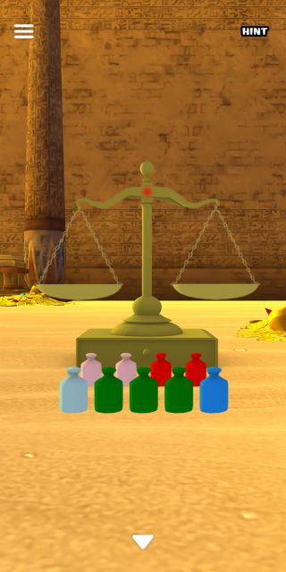 次の同様に両方の皿が釣り合うように重りを全て置く。