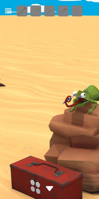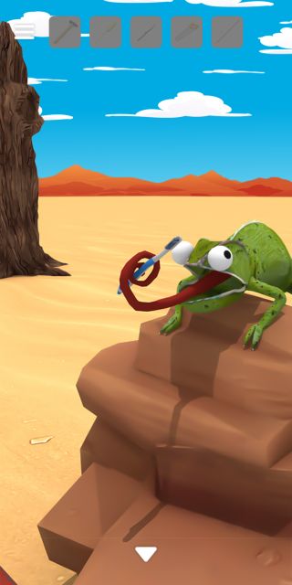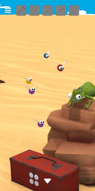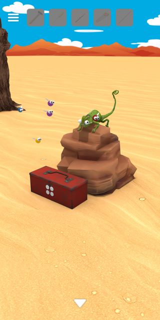 『紫青黄赤紫』の順で虫をカメレオンに食べさせる。