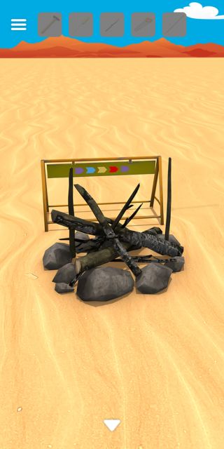 左の焚き火を拡大して、『紫青黄赤紫』を確認。