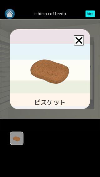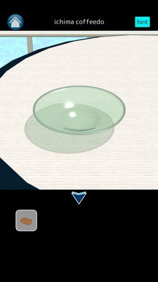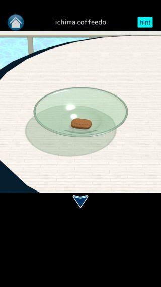 テーブルの上のガラス皿に「ビスケット」を置く。