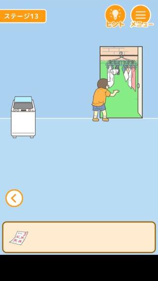 ママから0点テストを隠す! - 脱出ゲーム 無料 4.0 評価する 送信する Eureka Studio ステージ13 風呂にお湯を入れる。 右のカゴから「洗濯物」を入手。 右に移動して、洗濯機に「洗濯物」を入れる。 「洗濯物」を回収する。 扉を開けて、「洗濯物」を干す。 干した洗濯物に「テスト」を隠す。 ステージ1 ステージ2 ステージ3 ステージ4 ステージ5 ステージ6 ステージ7 ステージ8 ステージ9 ステージ10 ステージ11 ステージ12 ステージ13 ステージ14 ステージ15 ステージ16 ステージ17 ステージ18 ステージ19 ステージ20 ステージ21 ステージ22 ステージ23 ステージ24 ステージ25 ステージ26 ステージ27 ステージ28 ステージ29 ステージ30 ステージ31 ステージ32 ステージ33 ステージ34 ステージ35 ステージ36 ステージ37 ステージ38 ステージ39 ステージ40 ステージ41 ステージ42 ステージ43 ステージ44 ステージ45 ステージ46 ステージ47 ステージ48 ステージ49 ステージ50