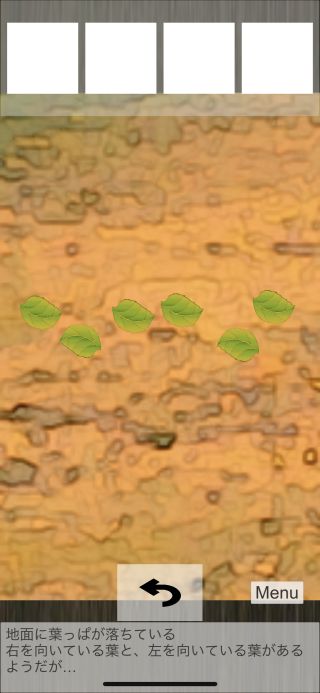 手前の地面を調べて、葉っぱの向きが『右左右右左右』なのを確認。