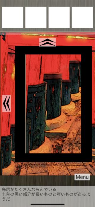 鳥居の左の土台を拡大して、黒い部分の高さが『高高低高』なのを確認。