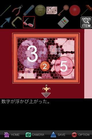 前の部屋の絵に「赤いメガネ」を使うと、大中小の円の中に数字が現れる。