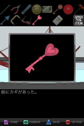 ガラス戸の中の左のハッチに「ハートのカギ」を使う。