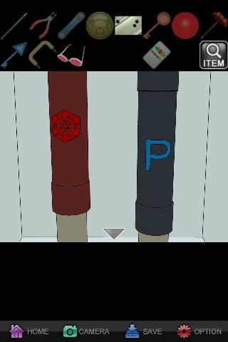 最初の部屋の「緑のプレート」があった場所のパイプに『P』とあり、隣の部屋の水槽の下のパイプにもアルファベットが書かれている。