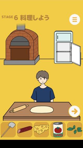 左に移動して、ピザ生地に「サラミ」「チーズ」「トマトソース」「バジル」を使う。