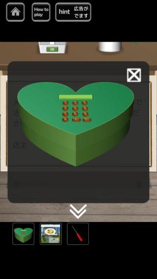 『password』の順で『94771236』となるので、「ハートの箱」に入力する。