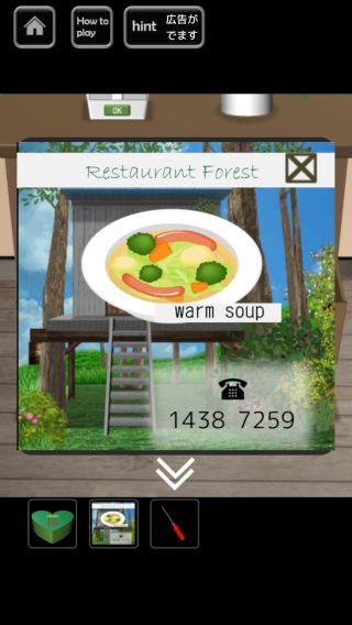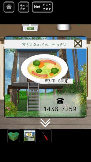 「チラシ」の『warm soup』の文字を右下の電話番号に当てはめる。