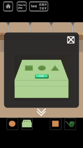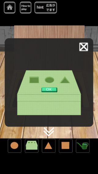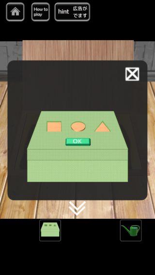 「四角いパーツ」「丸いパーツ」「三角柱のパーツ」をはめて開ける。