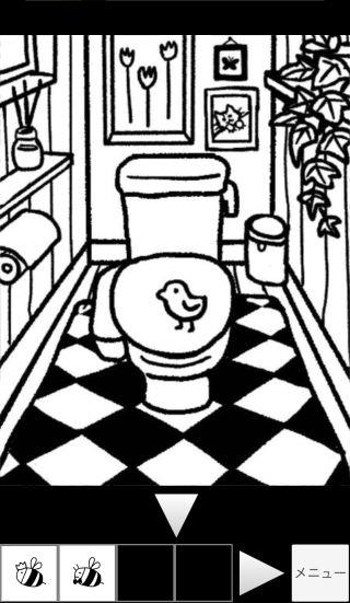 中に入って、チューリップの絵と鳥と蝶の額があるのを確認。