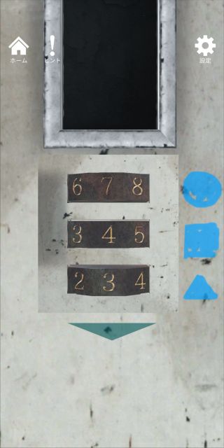 扉の装置を拡大して、『●=7、■=4、▲=3』に合わせる。