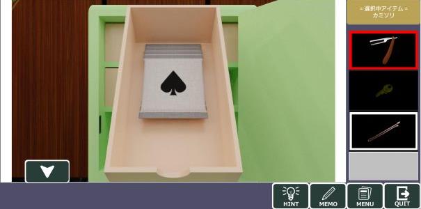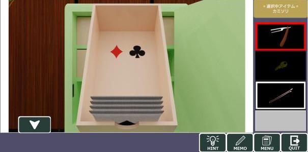 4つの引き出しを開けていき、中のアメニティに描かれているトランプのスートの数を確認していく。