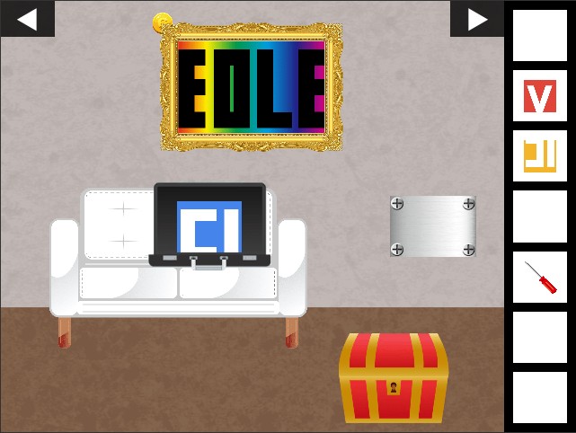 「青いパネル」を入手して、右の壁のネジを「ドライバー」で外す。