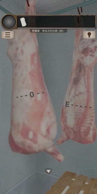 右の肉を裏返して、『4文字目=0、1文字目=E』を確認。