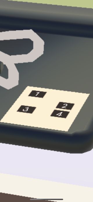 コンロの右下に「台所用の洗剤」を使って、1~4の数字の位置を確認。