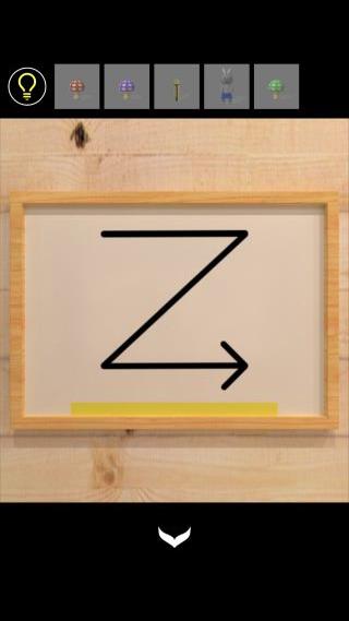 棚の上の額の矢印と、黄色い線を確認。