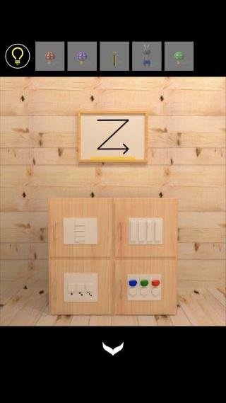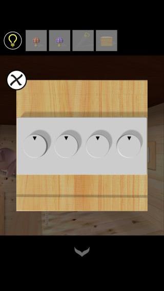 下の4つの丸太の切れ目の位置『右、左、右上、下』に合わせて開ける。