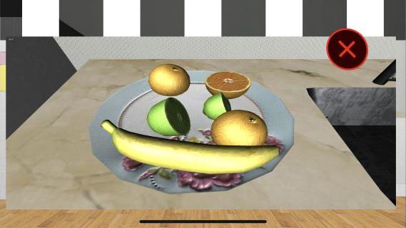 テーブルの上を拡大して、『バナナ=1本、オレンジ=1個半』を確認。