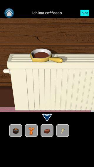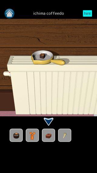 「四角いチョコレート」を置いて、手前に戻って再度調べると溶けている。