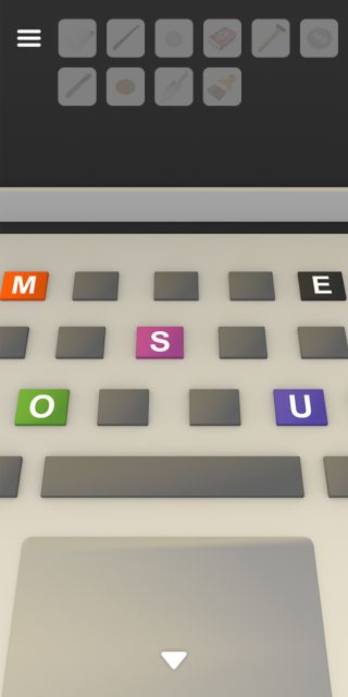 キーボードを拡大して、『オレンジ=M、黒=E、ピンク=S、緑=O、青紫=U』を確認。