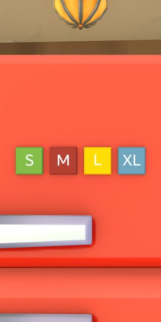 森のゴミ袋をヒントに『緑=S、赤=M、黄=L、青=XL』に合わせて開ける。