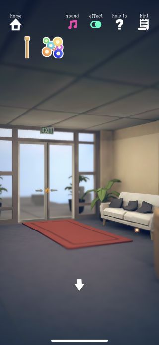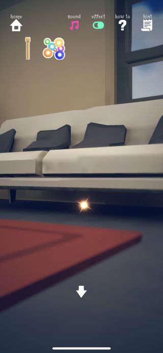 出口の右にある白いソファーの下を調べる。
