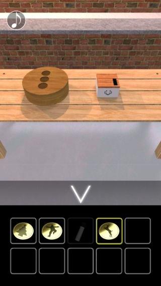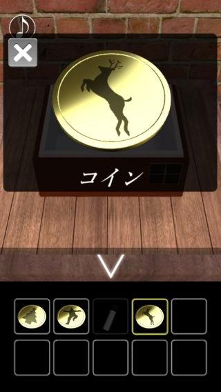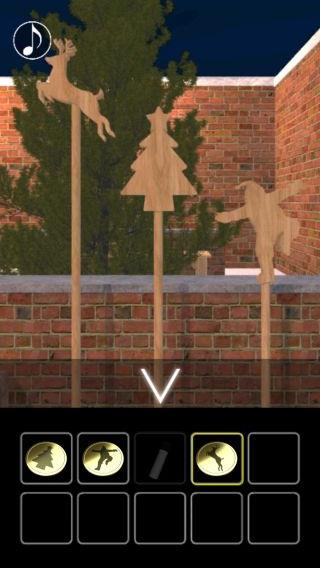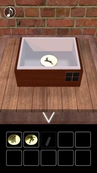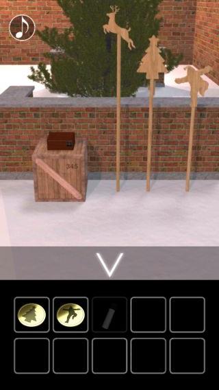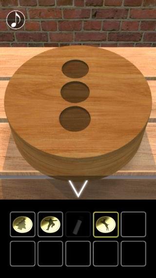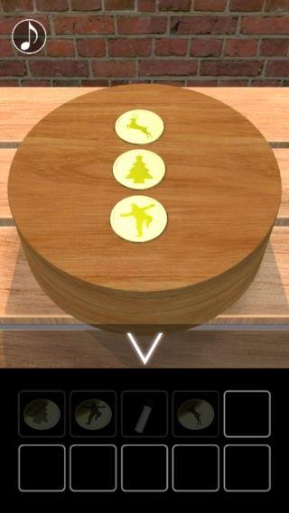 左の丸い箱を拡大して、上から『トナカイ、クリスマスツリー、サンタ』の順で「コイン」をはめる。