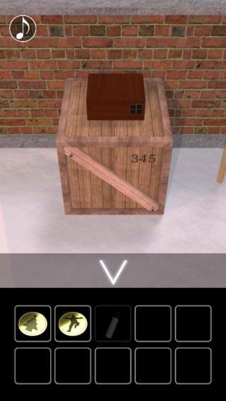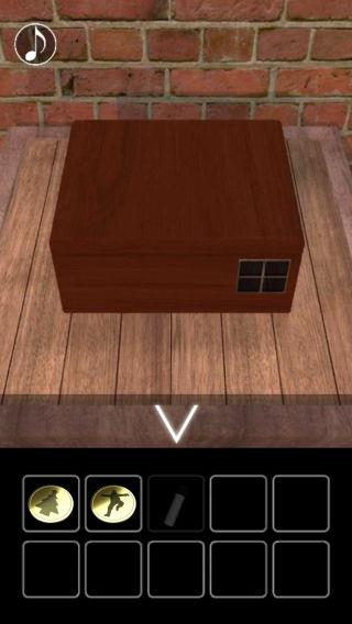 木箱の上の箱を拡大して、『左上、右下、左上、右下、右上、左下』の順で押す。