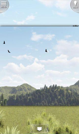 上の空を調べて、鳥の数と飛んでいく方向『3羽=右、1羽=左、2羽=左』を確認。